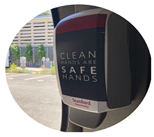 Hand sanitizer dispensers are installed on all shuttles to promote good hygiene